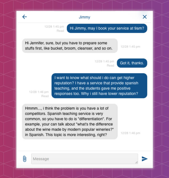 Private messaging tool for goods/service providers and customers, and setup in 10 minutes.私訊溝通,客戶個人專屬的處理管道。並透過資料了解你的顧客,適時地提供優惠訊息!
